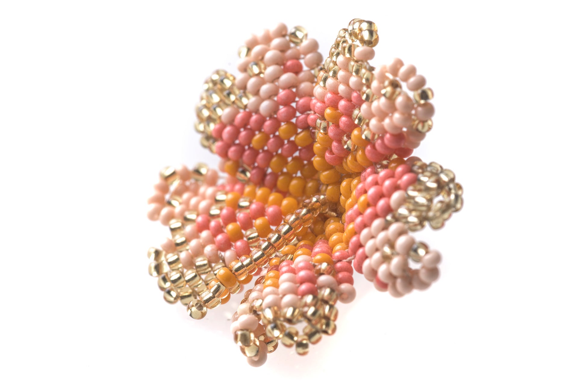 Embroidered in crystal beadwork, handmade by an Embera Chami woman in Colombia.