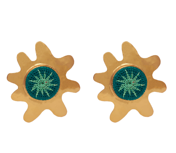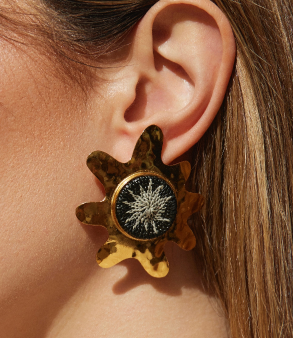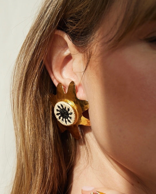 Material: 24k gold plated bronze with natural fiber threading from werregue palm.