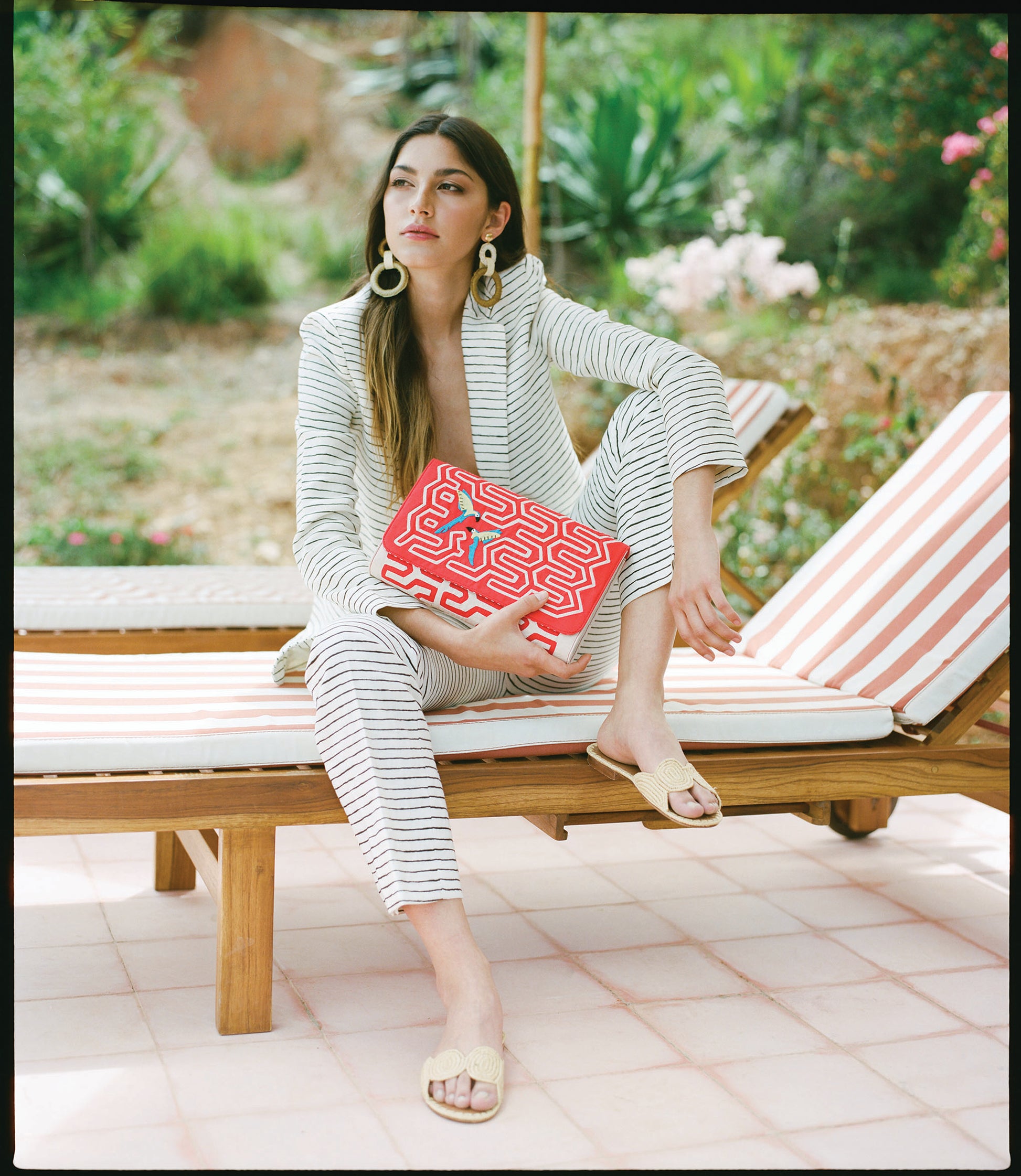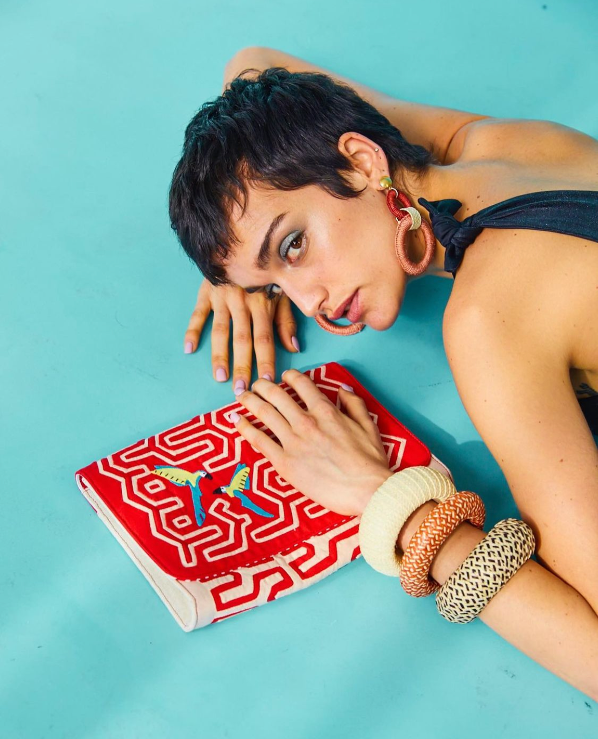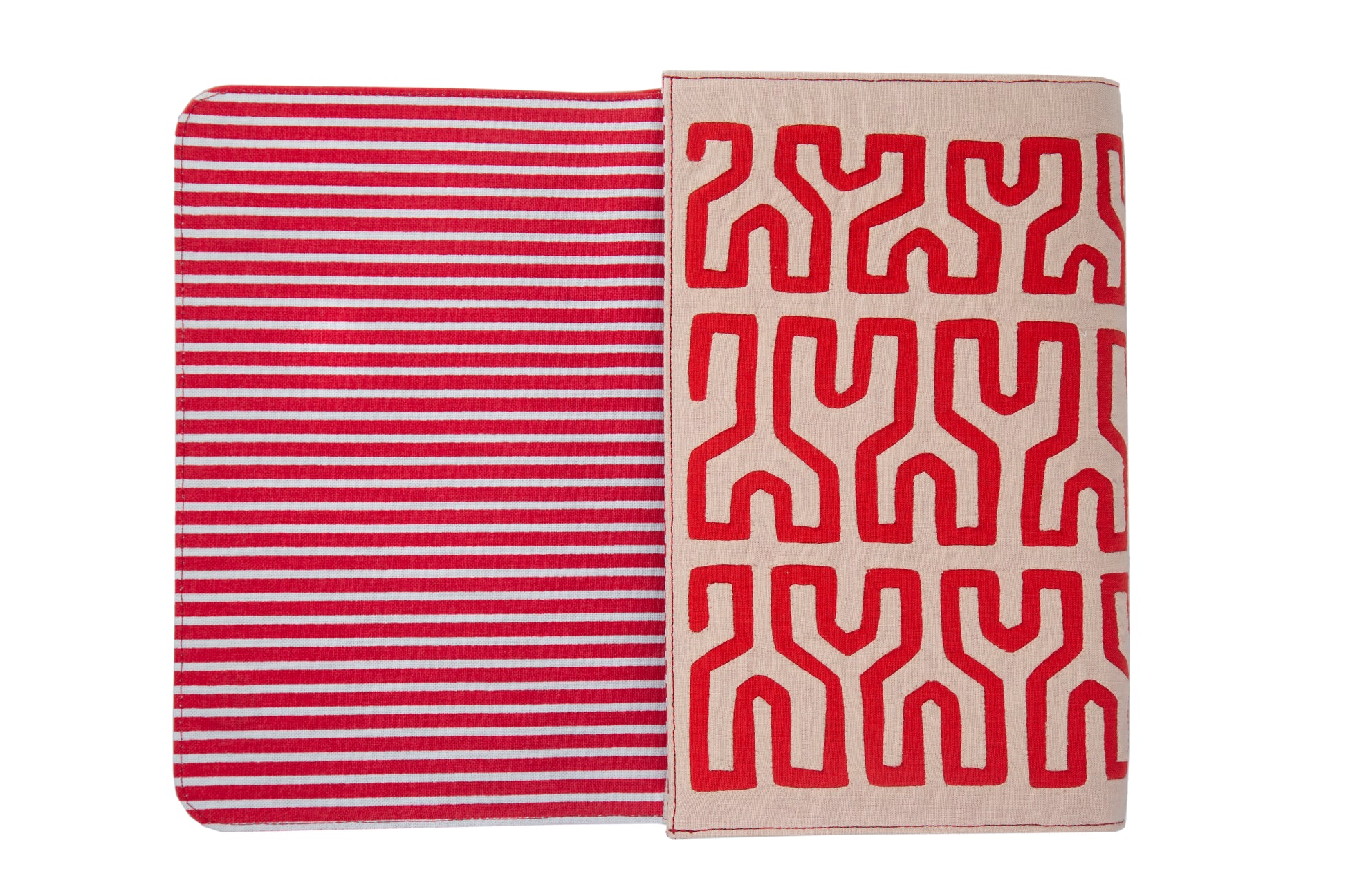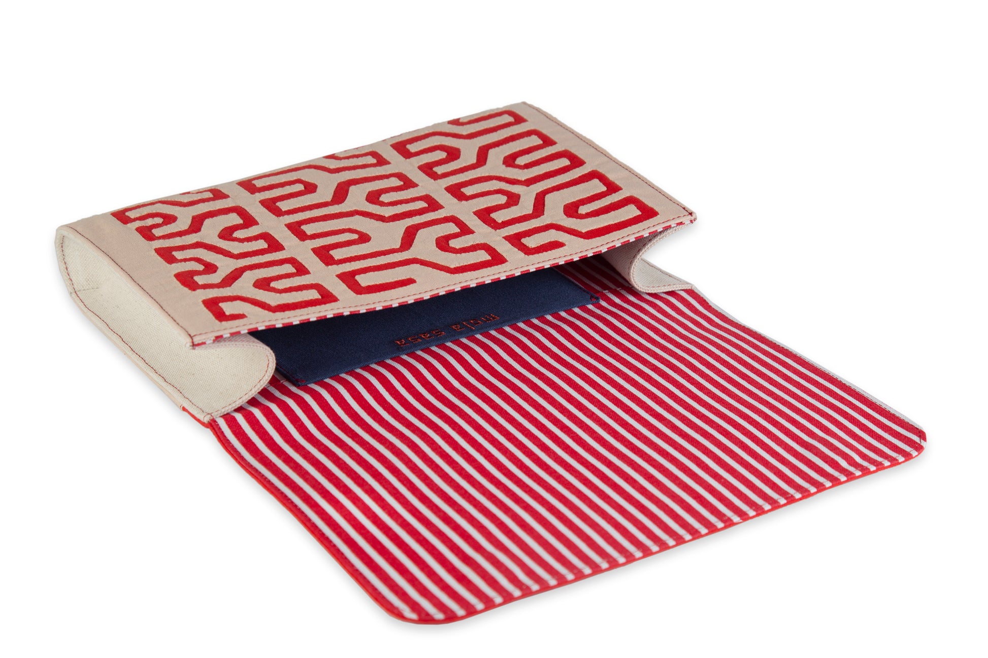 Add a little vibrancy to your neutral day-to-day with the bold, red color scheme and geometric patterns of this clutch, inspired by the native macaw parrots of South America.