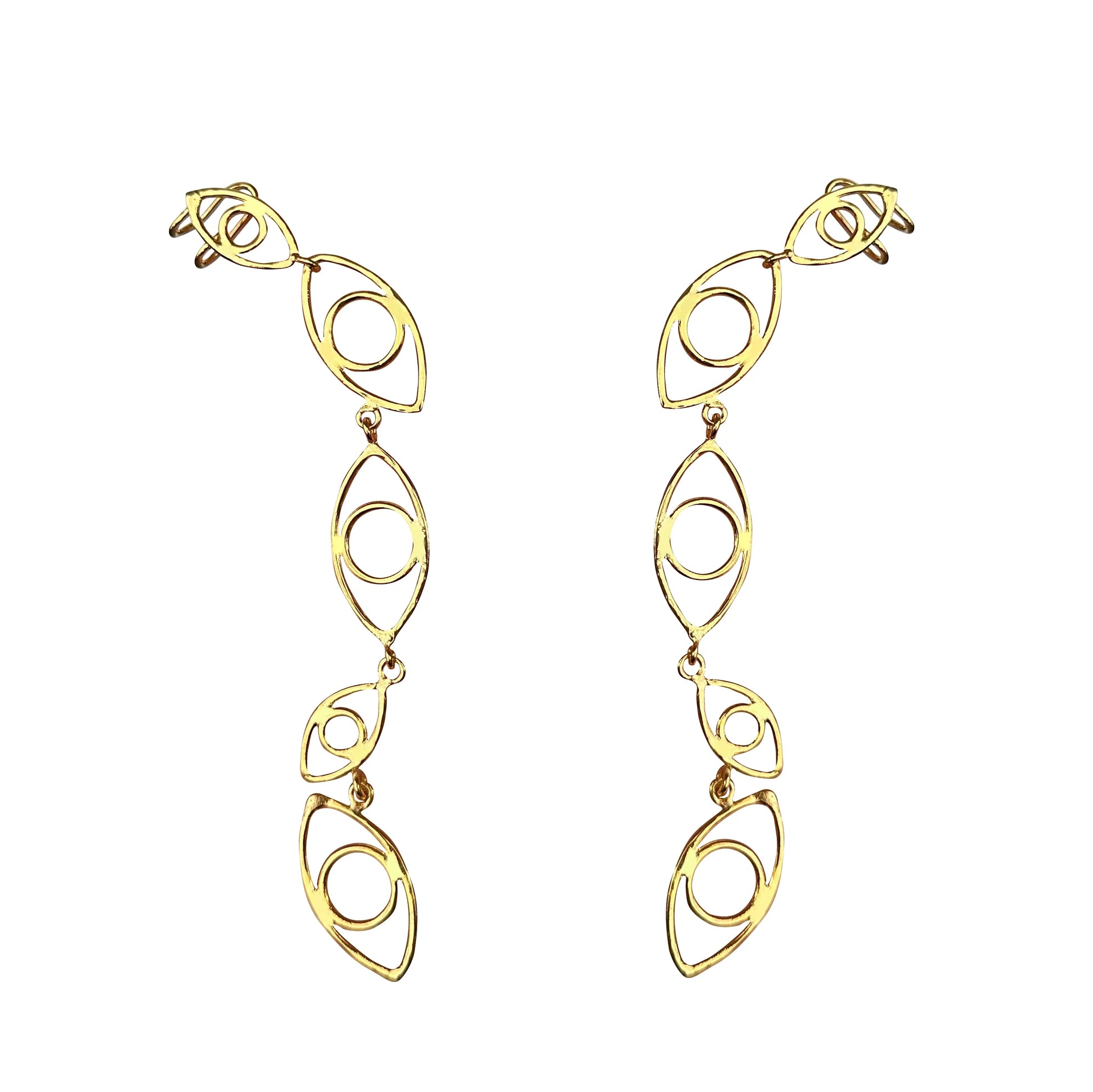Rain of Eyes Gold Dualcuff Earrings by Amulettos