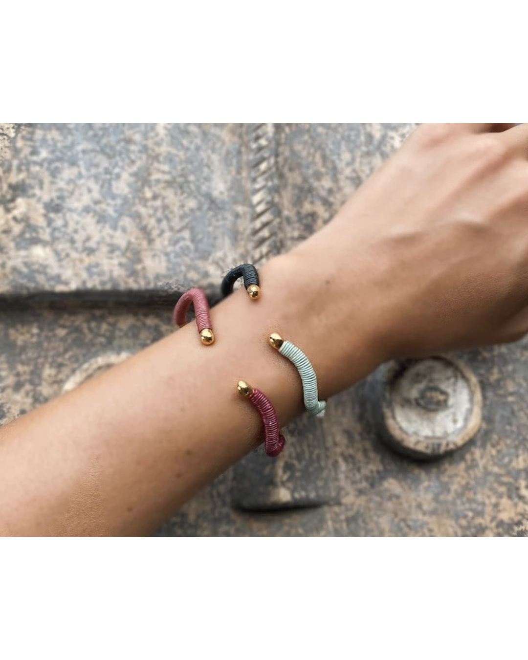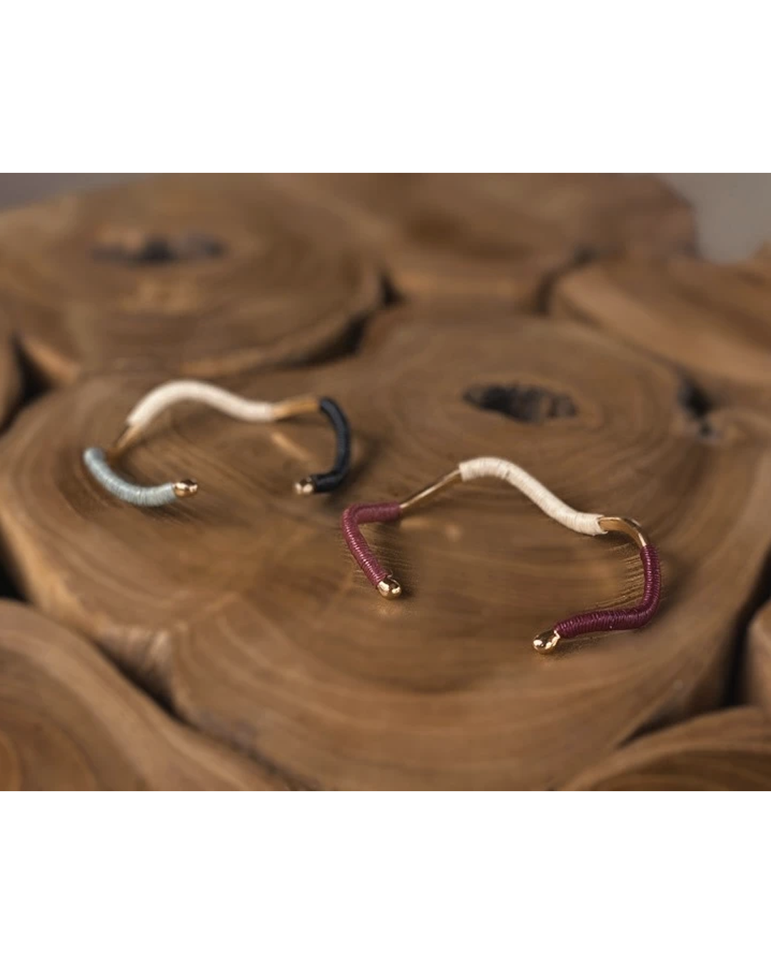 Material: 24k gold plated bronze with natural fiber threading from werregue palm.